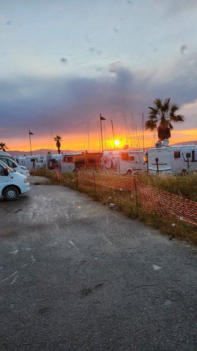 Kostenloser Parkplatz zwischen Jacht- und Containerhafen. Kleines Restaurant direkt anbei - ca. 6 km von der Altstadt entfernt. 19:00 Uhr Ankunft, nur noch den Abend genießen.