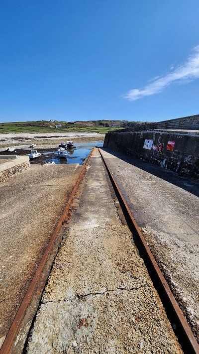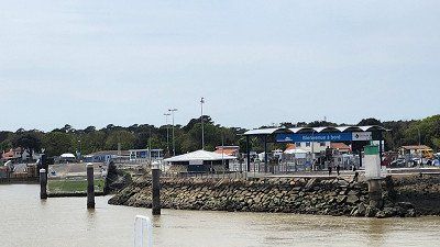 Vom Parkplatz aus, hinter dem Leuchtturm gibt es eine alte Slipanlage und eine kleine Schleuse - von dort kann man die Fähre rüber ins Zentrum nehmen. Die Fähre kostet nichts, die Überfahrt dauert etwa 10 Minuten.