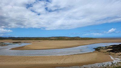 Nach einer Nacht mit starkem Wind und Regen - der Camper hat ordentlich gewackelt - haben wir uns für einen entspannten Lese-, Musik-, Rechner- oder auch Gammeltag entschieden und bleiben. In einer Regenpause noch mal zum Wasser gegangen und siehe da... Es gibt Strand, eine Sandbank und... ROBBEN :-)