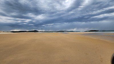 Frei stehen mitten im Nirgendwo... Auch wenn es keinen Strand gab, war es ein guter Ort... Allerdings nur wenn man zumindest für ein zwei Tage autark stehen kann. Keine Ver- und Entsorgung und auch sonst nichts. Hier blieben wir bis zum 24.05.2023, aber weil es die ganze Zeit stark regnete und man auf Sand steht, sind wir dann gefahren.