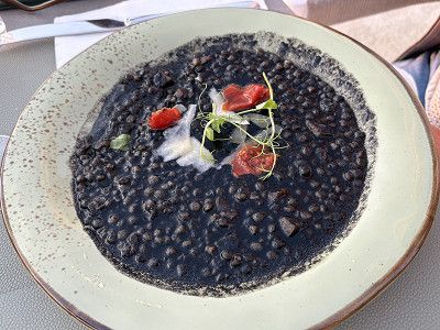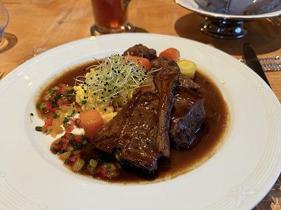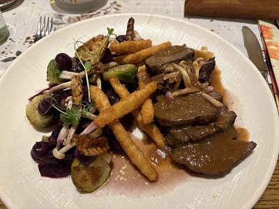 Zum Weingut gehört auch ein Restaurant mit sehr interessante Karte und gehobenen Preisen.