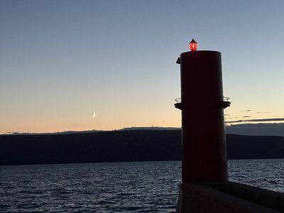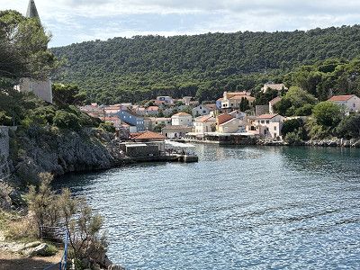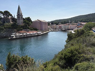 Fahrradtour in die Stadt Cres und weiter um die ganze Bucht bis zum gegenüber liegenden „grünen“ Leuchtturm.