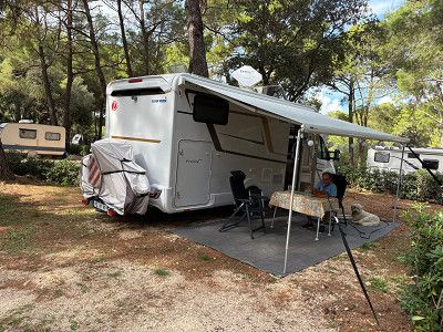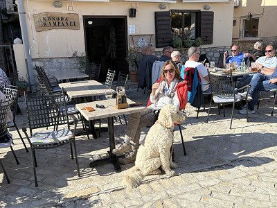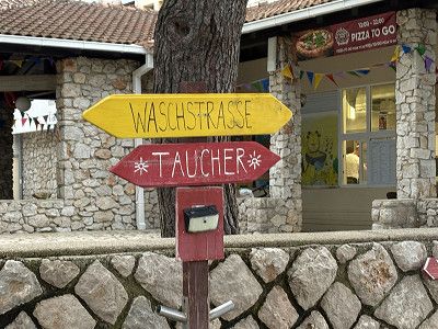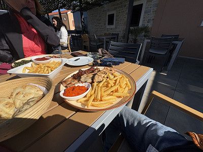 Auf dem Rückweg eine Zufallsentdeckung: Den kleinen aber feinen Camping und Restaurant Dionis am Rand von Zaton. Wollten etwas essen und erfuhren, dass der Platz heute schließt. Dionis hat ein paar Freund eingeladen und wir konnten noch einen leckeren Lammeintopf essen. Der Wein wird selbst angebaut! Preis pro Flasche 15 €. Eigenes Olivenöl (sehr lecker!) war uns bei 20 € für 0,75 lt. etwas zu teuer.