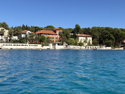 Entlang dem betonierten Küstenweg zur Čikat-Bucht und dem Hotel Aurora.