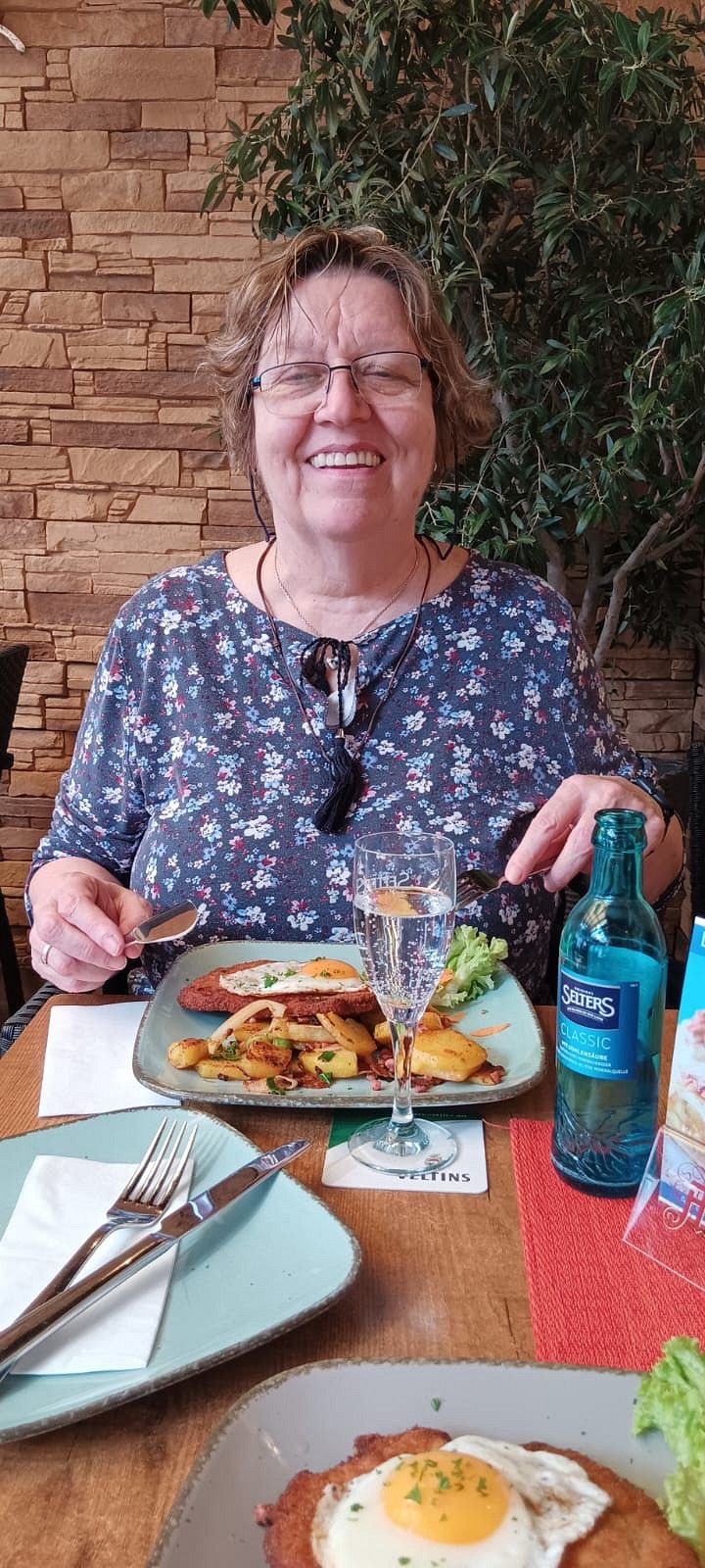 Here they had a very tasty Winzerschnitzel for €11.90, I actually know it as Holsteinschnitzel but it was tasty and with the fried potatoes more than enough.