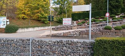 Direkt am Fuß vom Eingangszentrum gibt es einen Parkplatz für PKW und Wohnmobile.