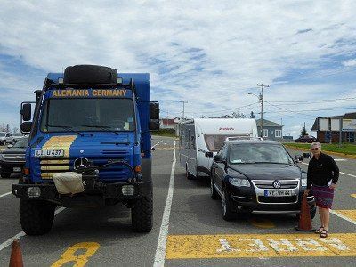 31.5.15: Von Riviere de Loup -eine Nacht vor der Überfahrt auf CP Camping du Quai- bringt uns die Fähre über den, an dieser Stelle ca. 20km breiten, St. Lawrence River nach St. Simeon. Auf dem Aufstellplatz zur Fähre treffen wir vorher einen Lindauer, der auf seine erste große Reise im Ruhestand geht.
