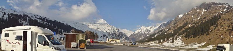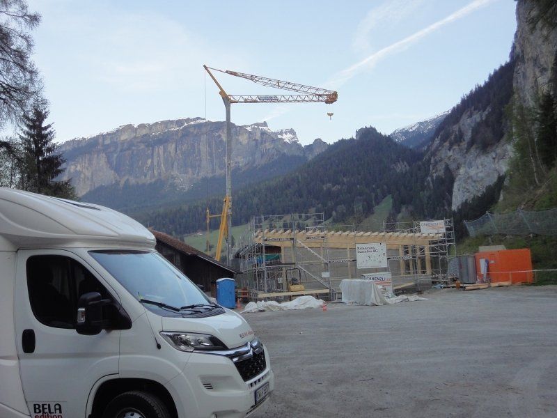 's Avonds vertrokken we door Zwitserland. We kozen de parkeerplaats bij Thusis voor de nacht. Maar zo ver kwamen we niet, de Bernardinostraat bij Chur was 's nachts volledig afgesloten vanwege een bouwplaats. Dus volgden we lukraak een omleidingsbord dat ons in de richting van Flims leidde. We waren totaal gedesoriënteerd, onzeker en besloten de nacht door te brengen op een bouwplaatsparkeerplaats.