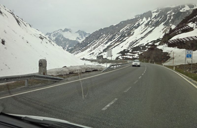 In de nacht begon het te regenen, toen we opstonden regende het pijpenstelen. De temperatuur zakte naar 14°C. De verdere terugreis moet ons via Zwitserland (Ofenpass en Flüelapass) voeren. Onderweg zag ik op mijn mobiel dat de Flüela Pass gesloten is. Dus moesten we onze route opnieuw wijzigen en onze reis naar huis beginnen via de Reschenpas. Bij het servicepunt voor Landeck hebben we een tiendagenvignet gekocht om gebruik te kunnen maken van de autobahn. We hebben geen gebruik gemaakt van de Arlbergtunnel, maar zijn over de pas gereden. We waren verbaasd hoeveel sneeuw er nog op de top van de pas lag. De reis van vandaag was zwaar, aan Duitse kant was de B31 bij Kressbronn afgesloten, de omleiding ging via Ravensburg. Was niet zo erg, we rijden gewoon via Sigmaringen naar huis. Bij Weingarten miste ik de afslag en ging dus terug richting het Bodenmeer naar Meersburg. Ik dacht dat ik mezelf dat niet aan zou doen, veranderde van richting en reed naar Ostrach. Kort voor Ostrach was ook de weg afgesloten, de omleidingsroute voerde ons door talloze kleine dorpjes en gehuchten totdat we uiteindelijk in Krauchenwies belandden. Vanaf dat moment ging het helemaal naar huis.