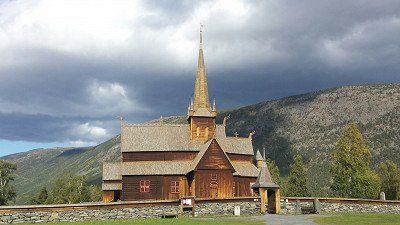 Stabkirche Lom, Fv 55 gesperrt, Olden