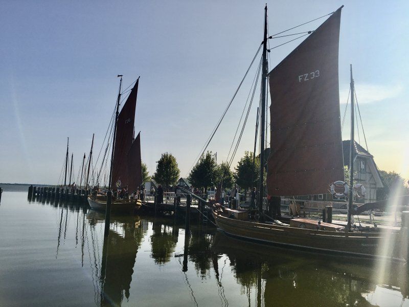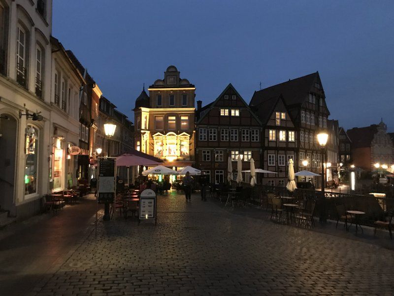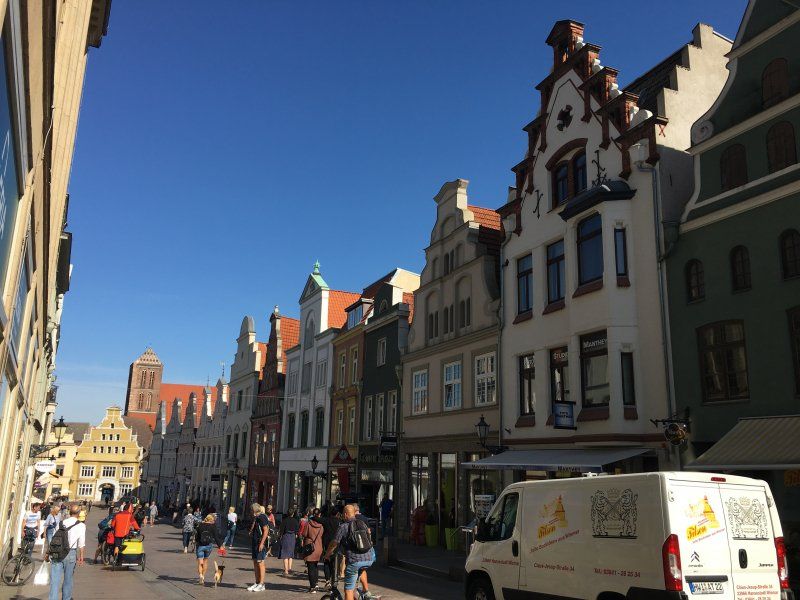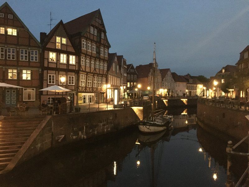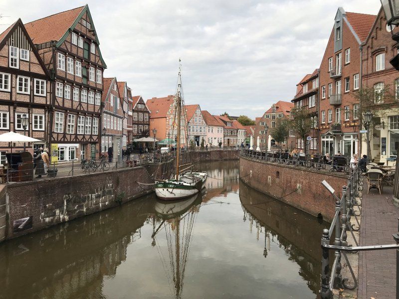 Vandaag is het koopzondag en de stad is levendig, met overal muziek, leuke cafés, pubs en winkels. We trakteren onszelf op een bakje cake en besluiten spontaan onze ruw geplande route, die ons eerst naar de Lüneburger Heide zou hebben geleid, te verlaten en eerst naar de Darß te rijden, het is daar gewoon super mooi weer.