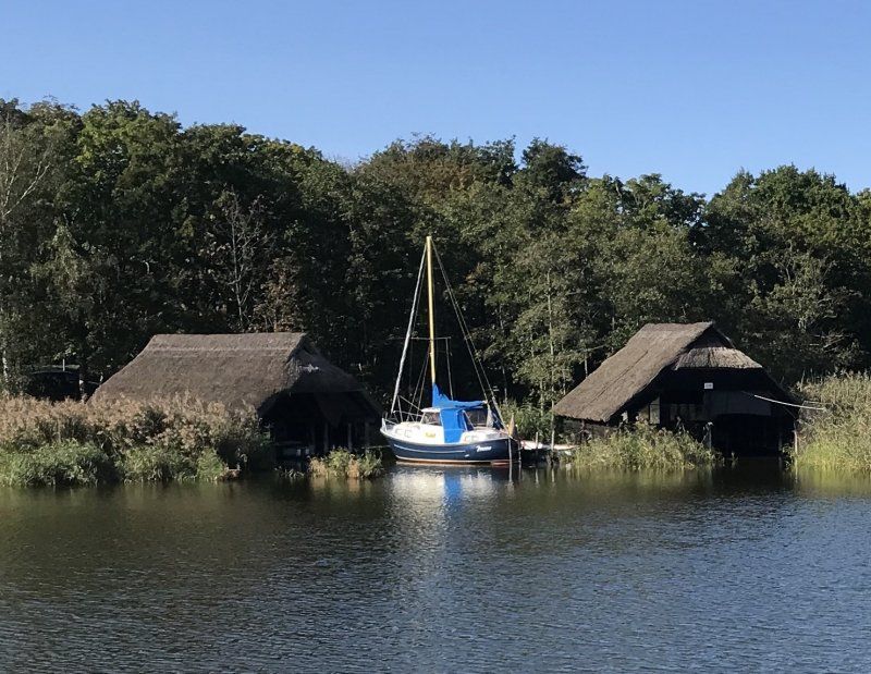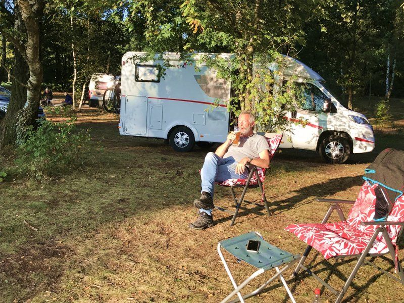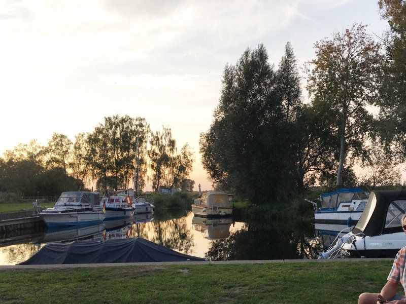 We komen kort na Fehrbellin, ten noorden van Potsdam. De park4night-app leidt ons naar een schattige, gratis parkeerplaats voor stacaravans bij een steiger voor kleine boten, midden in een merengebied met riet en vogelspotten. Er zijn picknickbanken en we zitten nog in de avondzon, wandelen langs het vogelspotpad en zijn blij dat dit allemaal mogelijk is in één vakantie! We kunnen de kraanvogels niet zien, maar we kunnen ze horen! Samen met de grijze ganzen organiseren ze een geweldig spektakel, de grijze ganzen vliegen in formatie over ons heen, geweldig! Na een salade en een glas rode wijn gaan we rusten.