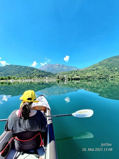 Eine erste Tour mit dem Kajak über den spiegel glatten See war einfach wunderbar.