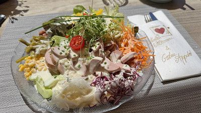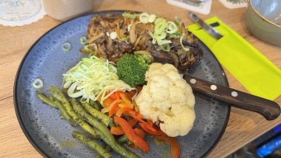 Weil heute ziemlich Regen angesagt ist, bleiben wir grösstenteils auf dem Campingplatz. Um doch noch etwas zu bewegen sind wir nochmals nach Alpirsbach gegangen und haben in einer Regenpause das Vorzelt abgebaut und halbwegs trocken verstaut. Zum Abendessen wollten wir eigentlich ins Gasthaus 'Untere Mühle' gehen, aber aufgrund des Wetters haben wir uns umentschieden und uns nochmal im Restaurant Nimeco auf dem Campingplatz veköstigen lassen, was ebenfalls eine sehr gute Wahl war.