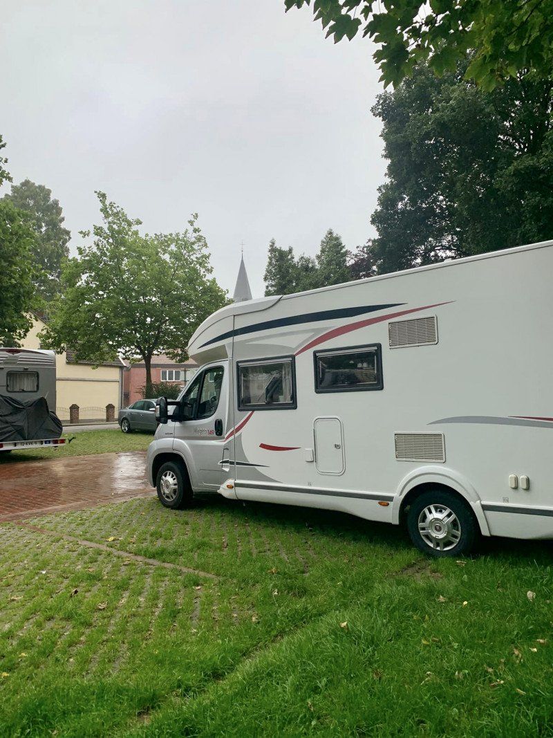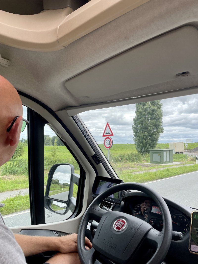 We staan monter op. het was wat koud vannacht, maar daar hebben we weinig last van gehad door de heerlijke dekbedden. Na een ontbijtje starten we de camper en vertrekken naar het noorden. We gaan de pont pakken van wischhafen naar gluckstadt. Rustig rijden we door het noord duitse landschap. Onverwacht mooi en rijk aan bossen. Wie had dat gedacht! Net na het middaguur draaien we de weg op naar het pont. Nog 800 mtr zegt madame google: en we staan stil. Het zal toch niet de wachtrij voor het pont zijn! Nou, ja... dat is het wel. Het gaat wel snel en na ruim 1 uur wachten zien we het pont aankomen. Maar, net voor onze neus gaat de slagboom dicht. Wel is het dan zeker dat je met het volgende pont meega. Wat gaat er veel verkeer opzeg, verbazend gewoon. Eenmaal aan boord betalen we 27,-, u heeft een fietsenrek- en genieten van de vaartocht. De vele vogels die meevliegen en langs de kant zitten. Aan de overkant meert het pont af met een forse klap tegen de bolder. De motordame voor ons valt met moter en al tegen haar man aan. Gelukkig kan iemand haar helpen en ze rijdt vrolijk weg. Wij ook en we genieten echt van de rit. We komen door Itzewie-itzewat-Itzehoe- een bekend plekje inmiddels. We rijden door bossen en over heuvels, het lijkt wel midden Frankrijk. Ook het weer is prima: zon en 20 graden. Eenmaal aangekomen op de camping begint het te miezeren, en dat blijft 24 uur zo. Maar dat kan de pret niet drukken. Eten koken en naar bed!